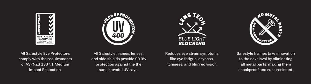 The SafeStyle Classics are the original safety glasses design that started it all. An iconic & stylish look paired with AS/NZS 1337.1 certified protection allows this pair to blend easily ‘from the worksite to the weekend