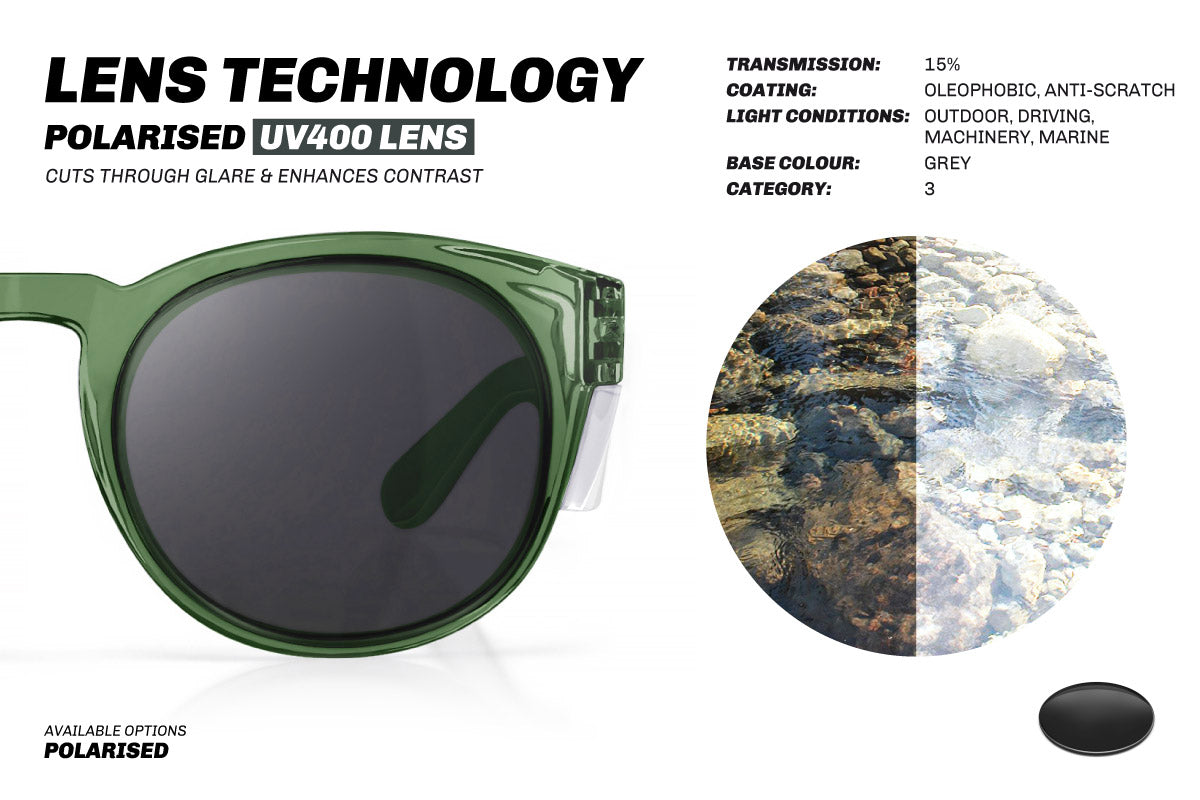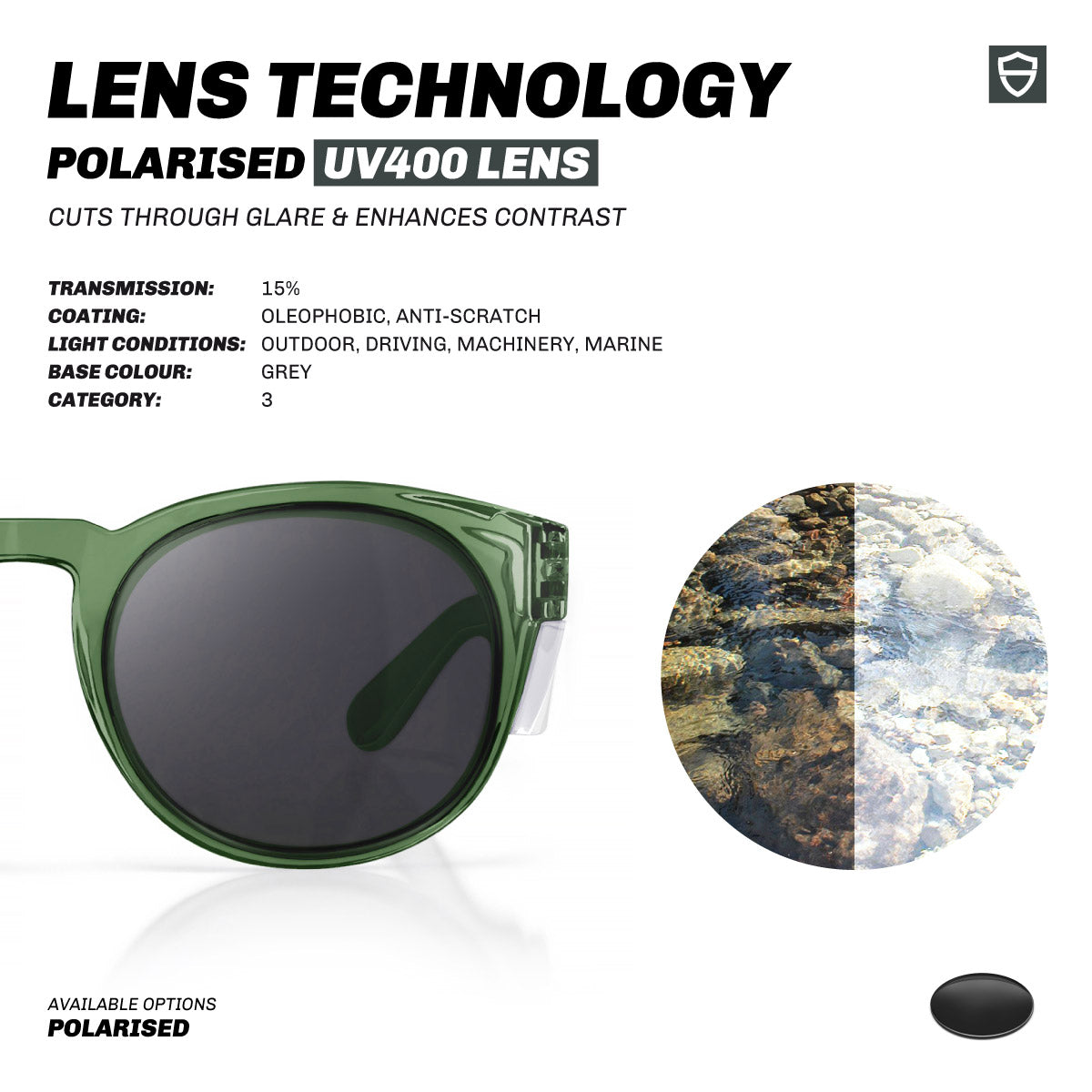 Cruisers Green Frame Polarised Lens Safety Glasses