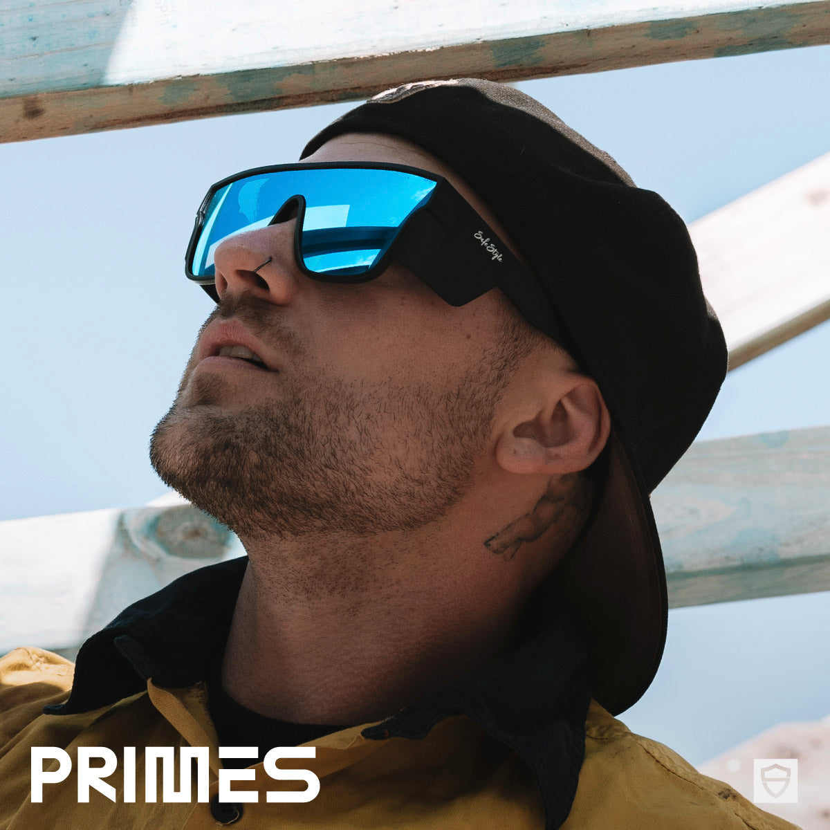 Go big or go home with the SafeStyle Primes. This one-piece, ultra-wide Reflectors Blue UV400 lens & oversized style set this release apart from anything you have ever seen.