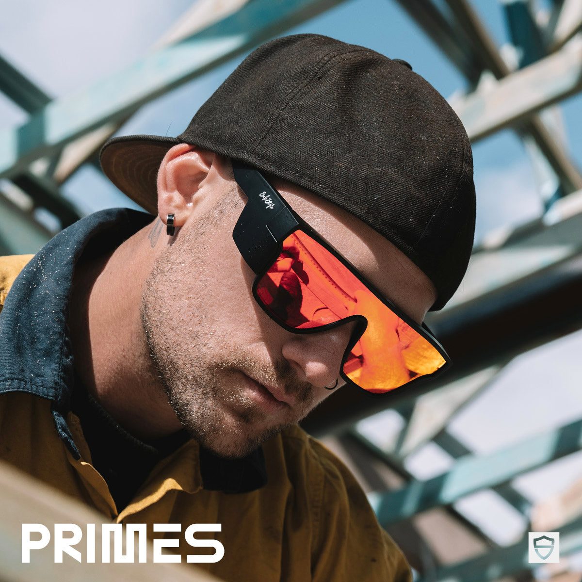 Primes Matte Black Frame Reflectors Red Lens Safety Glasses