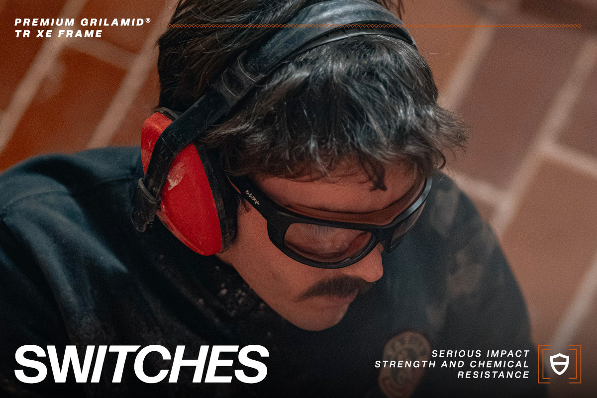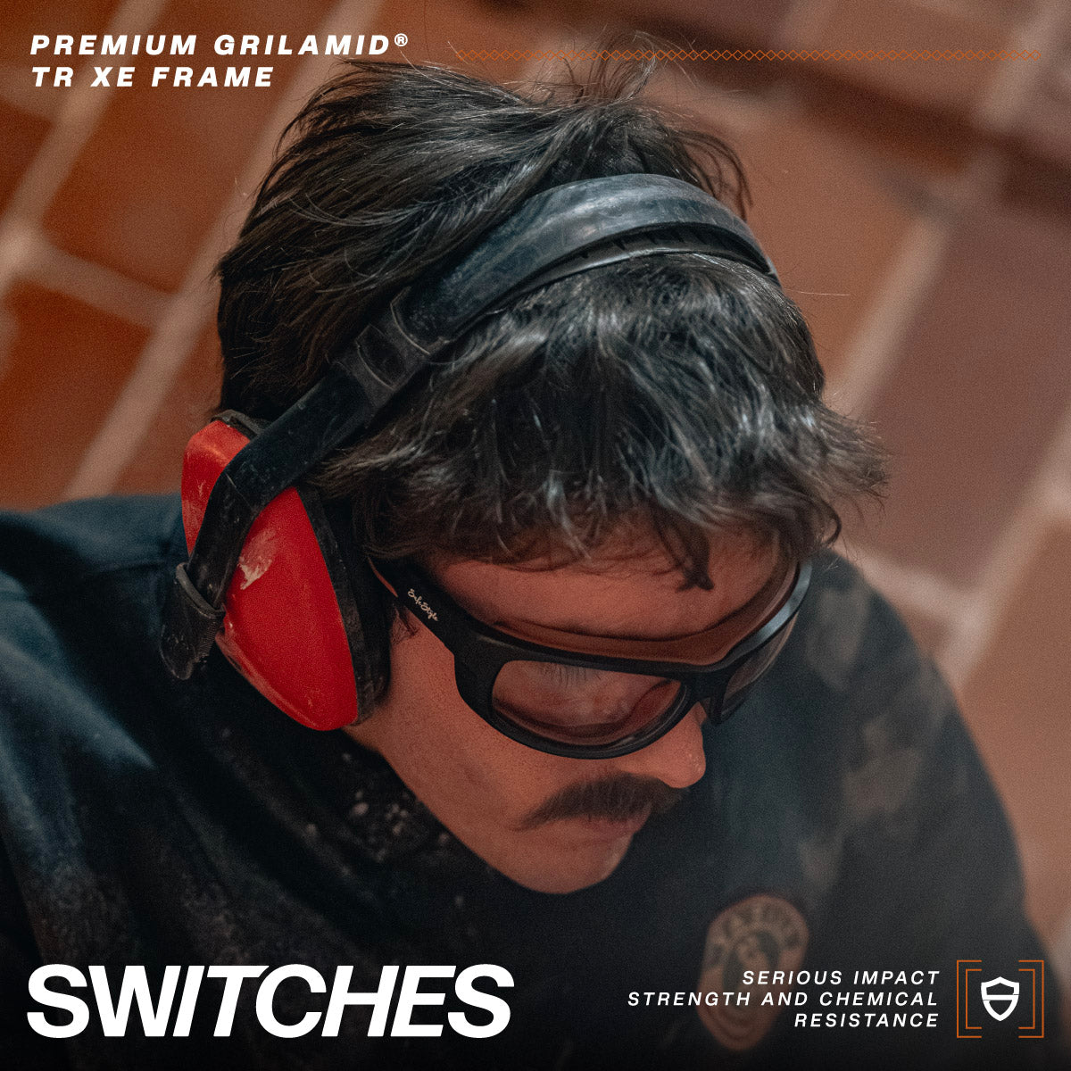 Built for those who demand two pairs in one, with both safety glasses and goggle options. The Switches wrap-around design provides complete protection, with interchangeable arms or straps and a removable gasket, making these the most adaptable pair of eyewear you own. Tough enough for the harshest conditions, yet able to switch when the job changes. Switch it up with the Switches.