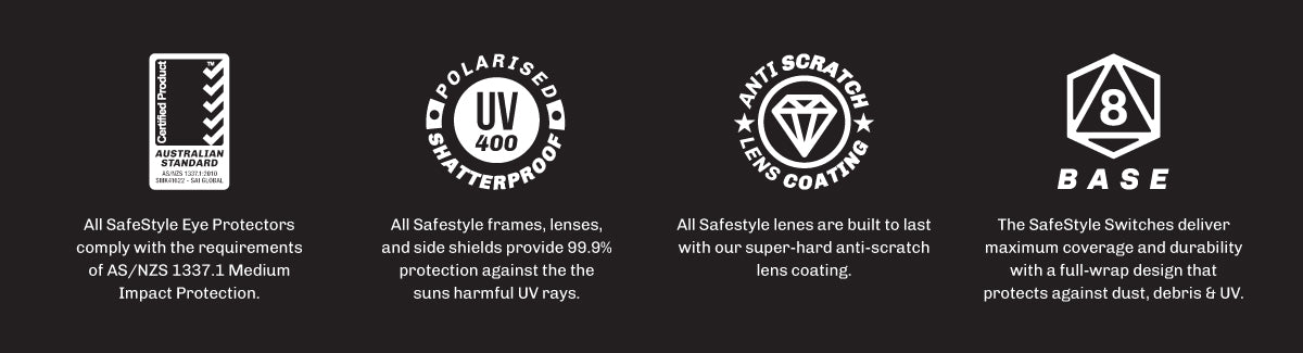 Switches Matte Black/Red Frame Grey Polarised Lens Safety Glasses