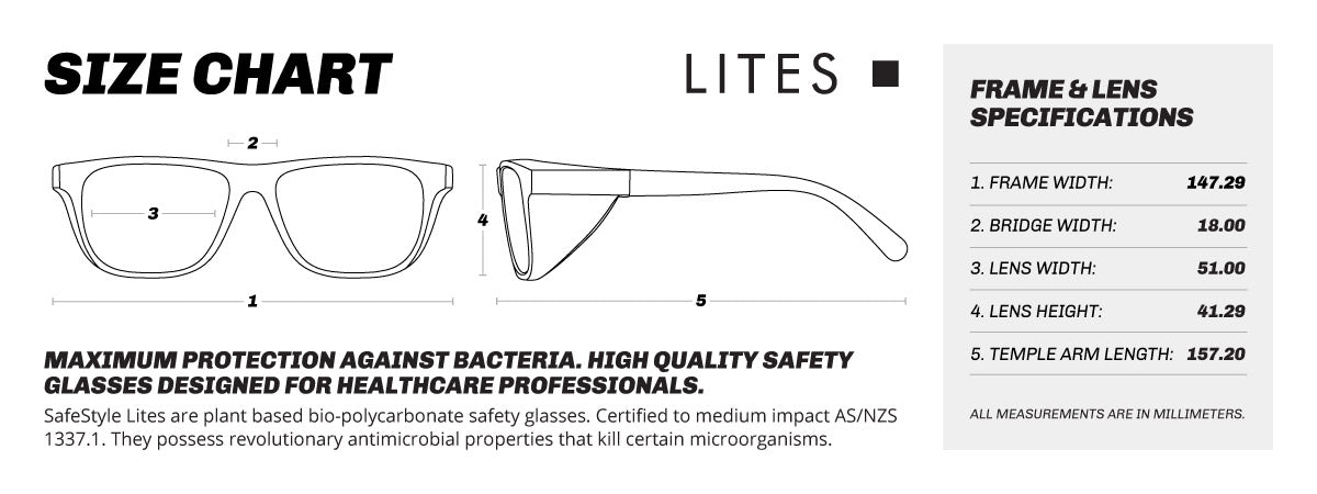 Keep safe in style with the SafeStyle Lites - Square. This protective eyewear is designed specifically for our healthcare heroes. Certified to medium impact AS/NZS 1337.1 standards, this is the perfect blend of protection & comfort that you deserve.