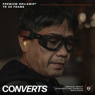 Built for those who demand comfortable protective eyewear that works as hard as they do. Engineered to adapt to any environment, Converts' flat frame design with an interchangeable gasket and optional strap delivers unmatched protection without sacrificing style. Tough enough for the harshest conditions, yet sleek enough to go unnoticed. Converts have you covered.