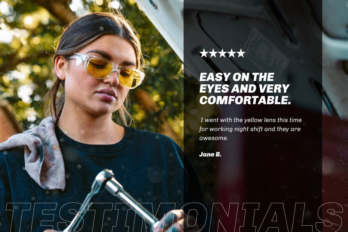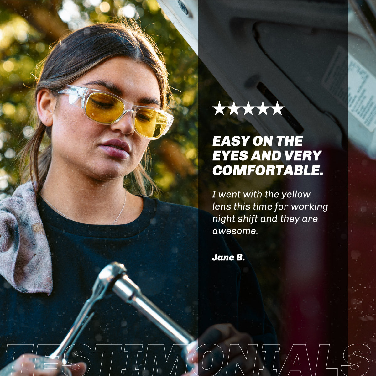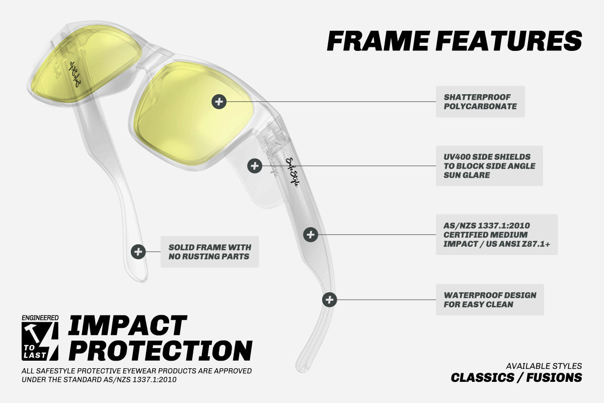 Enhance your vision in low-light conditions with SafeStyle's yellow lens safety glasses from the Night Shift collection. These safety glasses are specially designed to improve contrast, visibility and depth perception, keeping you safe and focused in the dark.