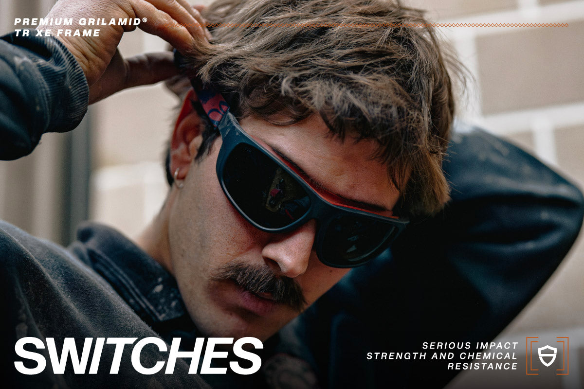 Built for those who demand two pairs in one, with both safety glasses and goggle options. The Switches wrap-around design provides complete protection, with interchangeable arms or straps and a removable gasket, making these the most adaptable pair of eyewear you own. Tough enough for the harshest conditions, yet able to switch when the job changes. Switch it up with the Switches.
