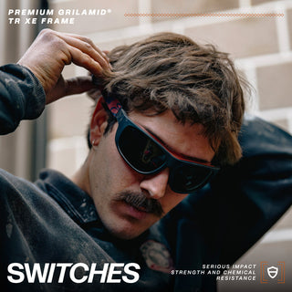Switches Matte Black/Red Frame Grey Polarised Lens Safety Glasses