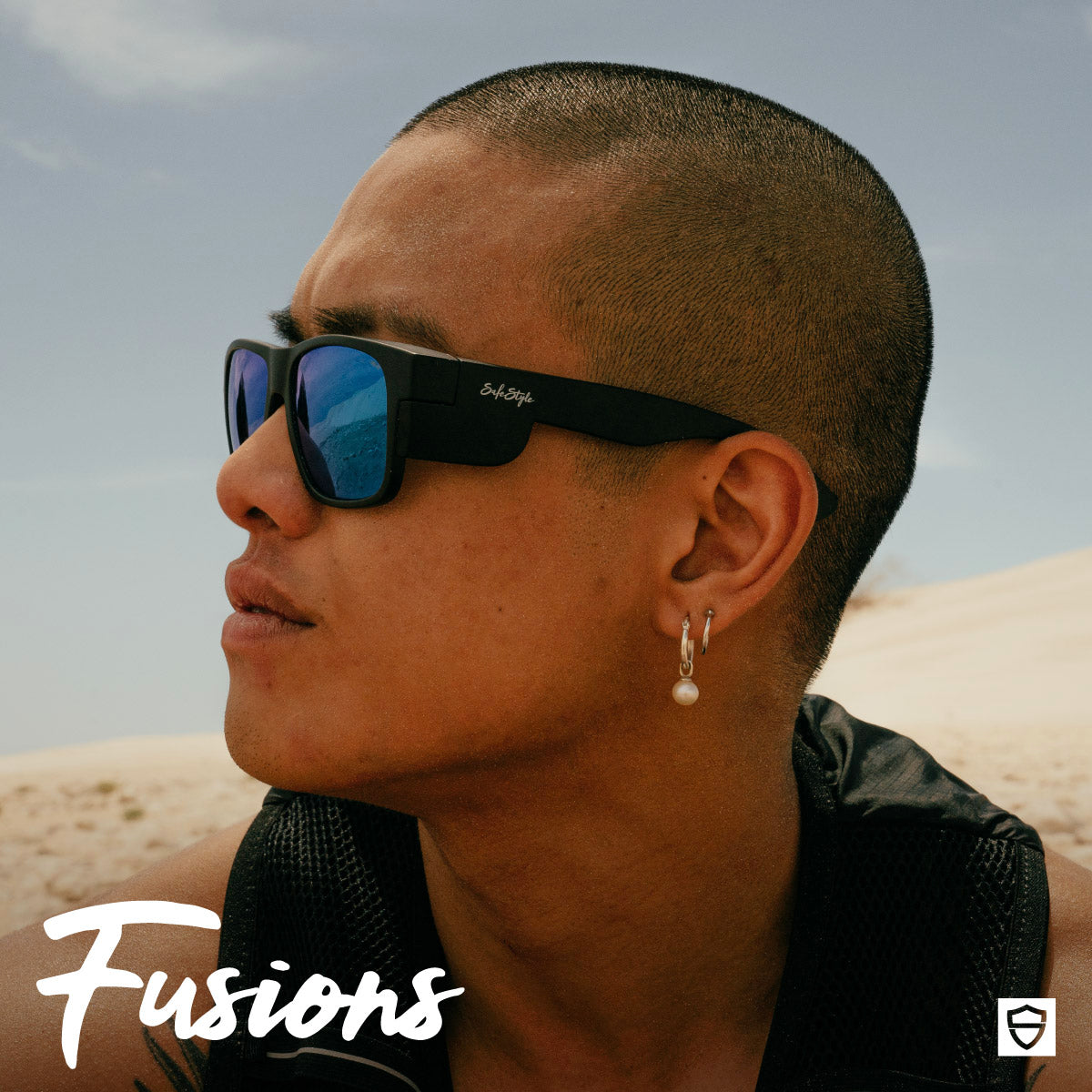 Fusions Matte Black Frame Mirrors Blue Polarised Lens Safety Glasses