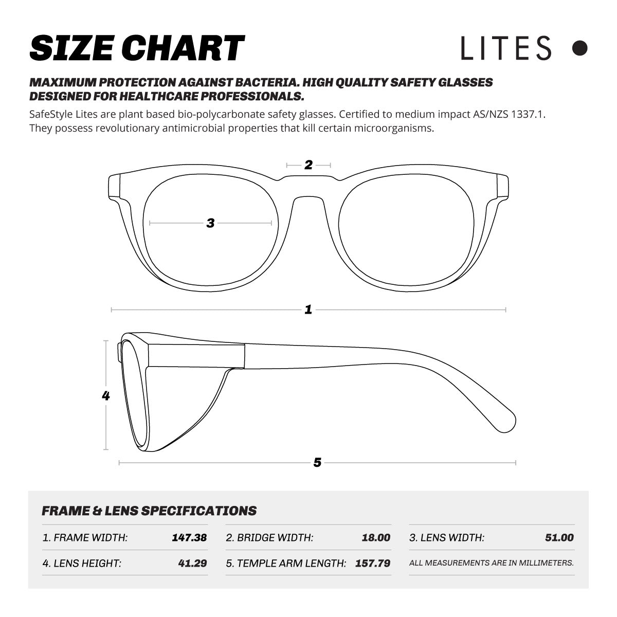Keep safe in style with the SafeStyle Lites - Round. This protective eyewear is designed specifically for our healthcare heroes. Certified to medium impact AS/NZS 1337.1 standards, this is the perfect blend of protection & comfort that you deserve.