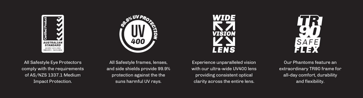 ‘From the worksite to the weekend’….the Phantoms embody our commitment to protective eyewear that seamlessly transitions with your lifestyle. We've got our nation of sports enthusiasts covered like never before. Runners, cyclists, golfers, surfers, fishermen and cricketers, it's time to level the playing field and embrace peak performance and innovative safety.