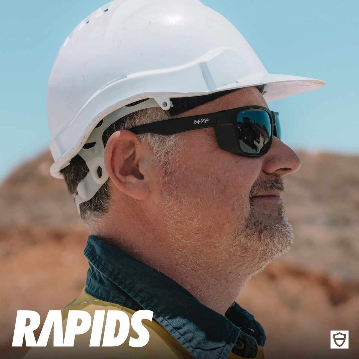 The SafeStyle Rapids are built for those who need maximum coverage and durability. This full-wrap design provides complete protection against dust, debris and UV without blocking peripheral vision.